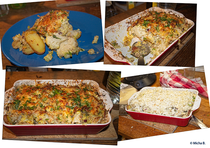 Blumenkohl liebe ich in nahezu jeder Verarbeitungsform und der gratinierte Blumenkohl-Kartoffelauflauf zählt zu meinen Lieblingsrezepten – gerade im Herbst, wenn es draußen ungemütlich wir, ist er ein perfekter Seelenwärmer. Gratin kommt ja immer gut und Käse kann man nie genug draufhauen…
